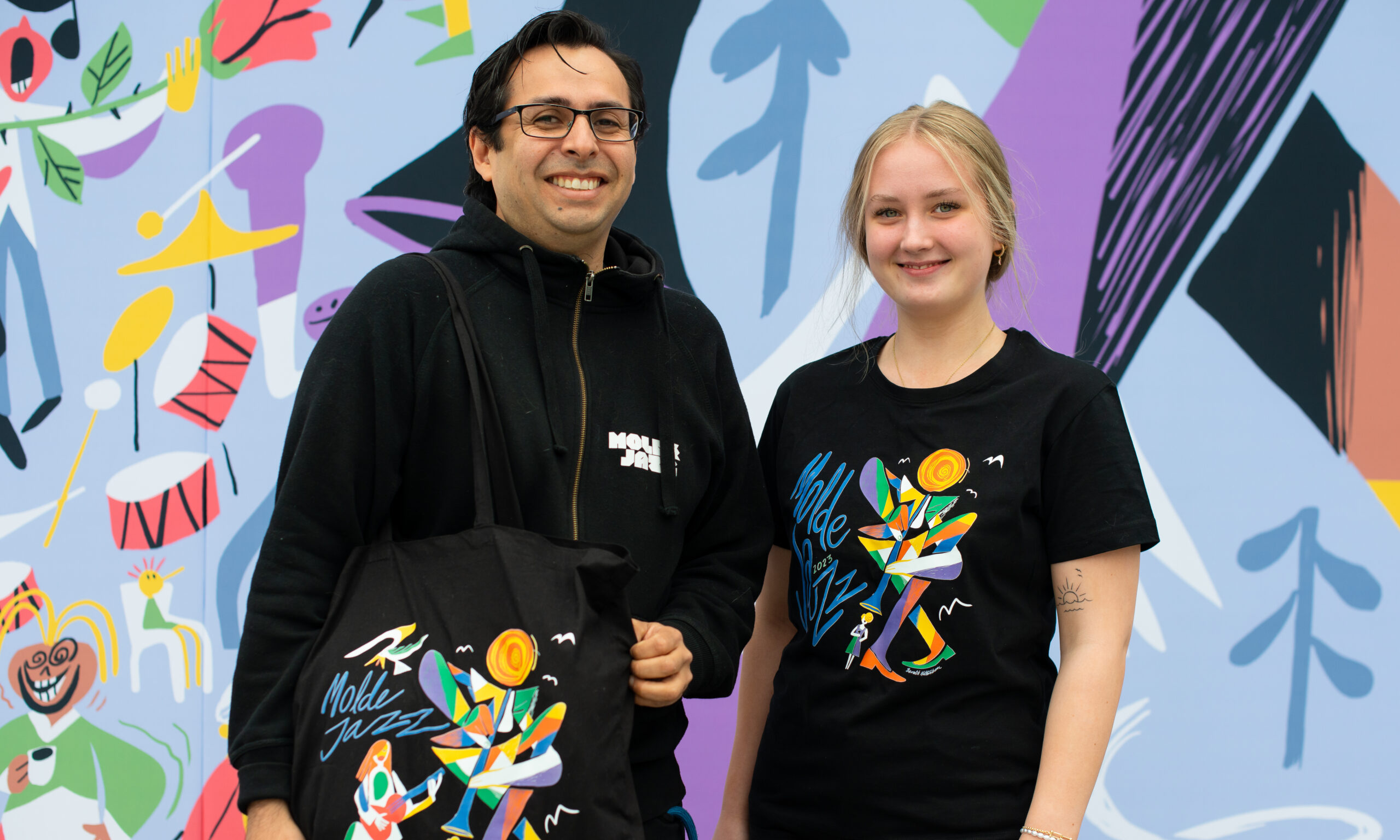 Årets festivalskjorte er designet av Festivalkunstner Bendik Kaltenborn som har hentet inspirasjon fra det fantastiske veggmaleriet til Gunnar Haukebø på Kneippen. Vår mangeårige samarbeidspartner og sponsor, Spektrum Profil, trykker skjortene lokalt på Vike i Vestnes kommune. Skjortene er i år av merket Stanley/Stella og de har bærekraft som en av kjerneverdiene. Stanley/Stella er blant annet GOTS-sertifisert - en av de mest rigide sertifiseringene for organisk bomull. Det garanterer at bomullen er organisk dyrket uten genmodifiserte frø eller skadelige kjemikaler, samt at det skal kunne spores helt fra høsting til kunden (les mer om løsningen her)