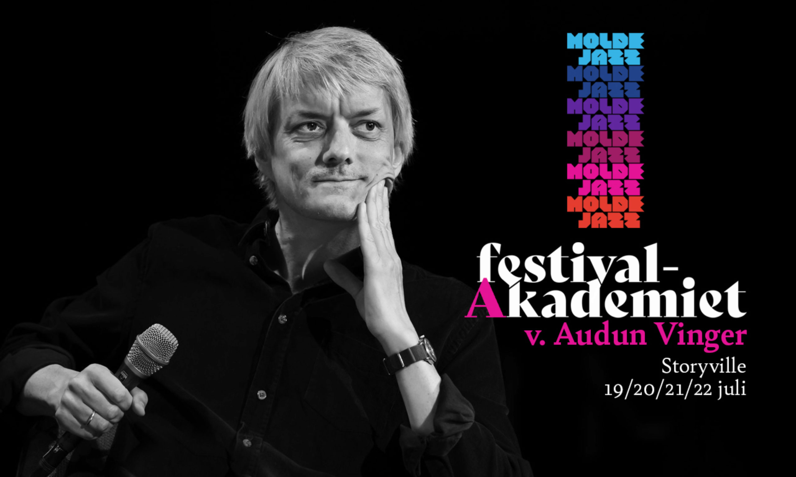 Hver dag fra tirsdag til fredag kl. 12:00 blir det Festivalakademiet på Moldejazz, der vi gjennom lærerike og hyggelige samtaler blir nærmere kjent med de gode artistene som opptrer på festivalen, der vi kan lære litt om festivalens historie, om jazzens vesen og om bransjens og musikkens utfordringer og muligheter.