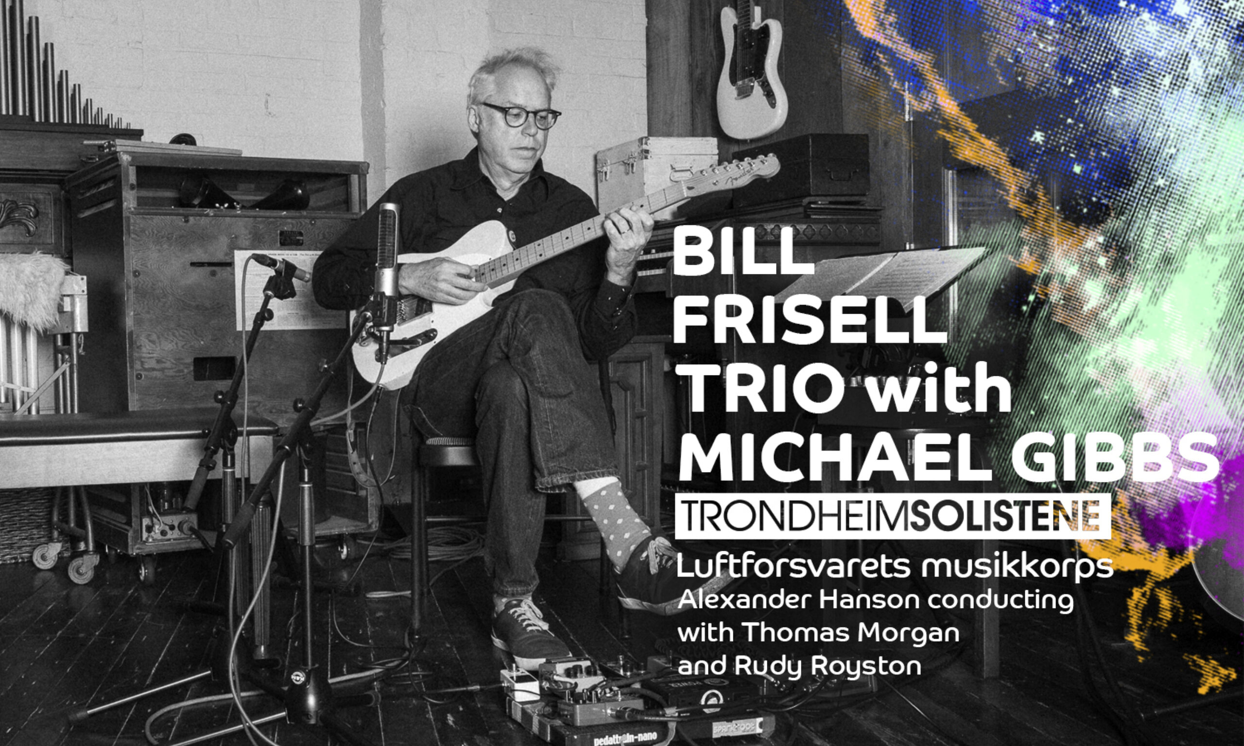 Vi er stolte av å kunne presentere Bill Frisell Trio sammen med Trondheimsolistene og Luftforsvarets Musikkorps i den levendegjorte presentasjonen av Orchestras